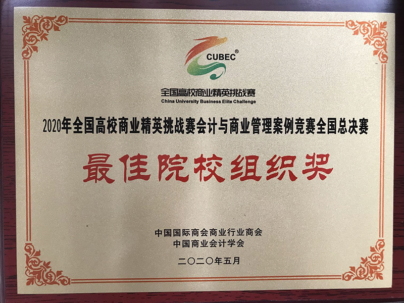 2020年5月,2020年全国高校商业精英挑战赛会计与商业管理案例竞赛,大陆地区总决赛举行线上赛,公司代表队在比赛中取得佳绩,并且公司首次荣获"最佳院校组织奖"。