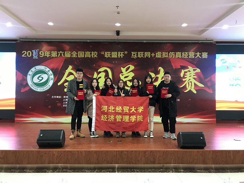 互联网+虚拟仿真经营大赛是教育部为贯彻落实习近平总书记关于强化育人工作的重要精神指示,促进创新人才成长,提高人才培养质量而举办的全国性的大赛。此次大赛吸引了近百所院校、近万名师生参加。经过层层选拔,最终有19个本科院校的25支参赛队伍进入总决赛。公司2016级市场营销1班的王磊、孙佳媛、曹啸崧、岳璐、郝冰、陈鑫在指导老师贺丽蕊的带领下,认真准备,沉着应战,荣获全国总决赛团队三等奖,为学院争得了荣誉。