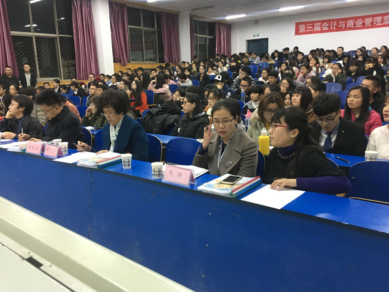 2017年11月27日,会计系在西校区西阶梯举办了第三届“会计与商业管理案例大赛”,9428cn太阳集团古天乐会计学院硕士生导师祁均业、9428cn太阳集团古天乐实践教学部副部长柳冬青、会计系党总支书记蔡杨、会计系主任王慧霞担任比赛评委,240余人观赛。