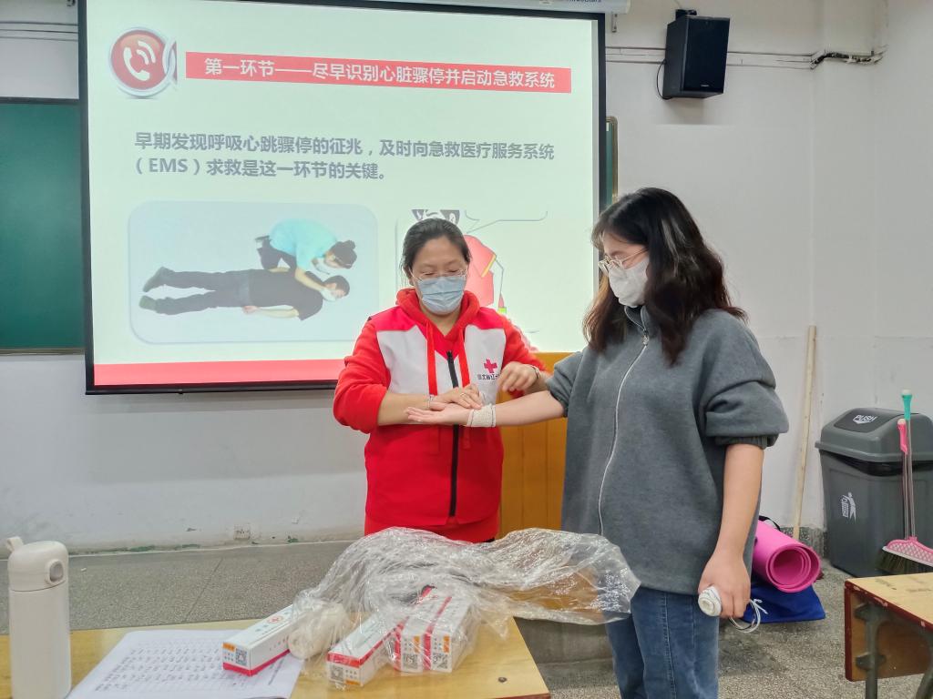 因疫情防控工作需要,本次培训以小班授课为主,减少大流量人员密集,也更利于培训老师有针对性指导新生学习。理论课上,员工们认真听讲,熟悉应急救护基础知识。实操课上,老师们详细讲解并耐心示范心肺复苏的操作步骤和创伤救护技能,指导学员们一一进行操作练习。培训现场同学们热情参与,气氛热烈。