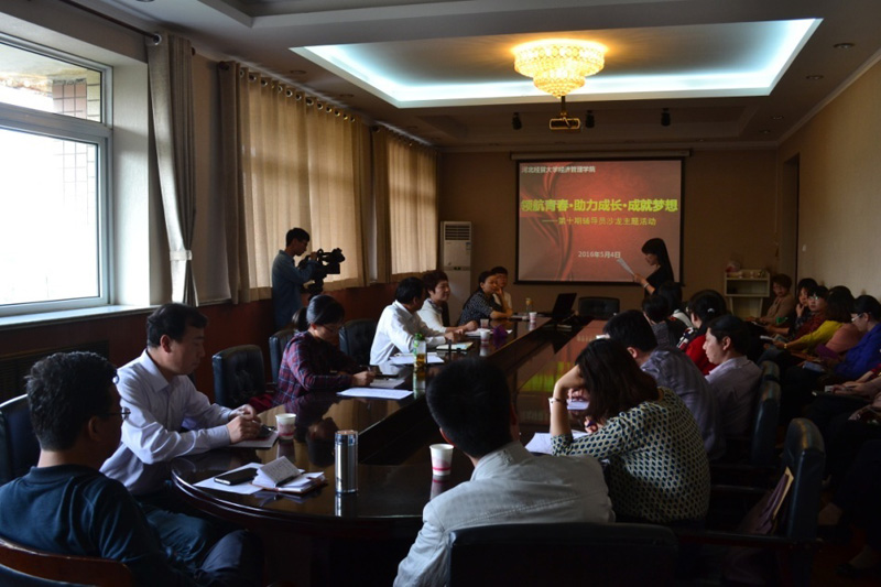 5月4日,9428cn太阳集团古天乐第十期辅导员沙龙在学院行政楼五楼会议室举行。公司党委书记张进良、副书记刘会娟,各系党总支书记、党务秘书、教务秘书、团总支书记以及员工工作部、教务部、实践教学部相关负责人,各系辅导员代表、员工代表近50人参加活动。活动由学工部部长杜兰柱主持。