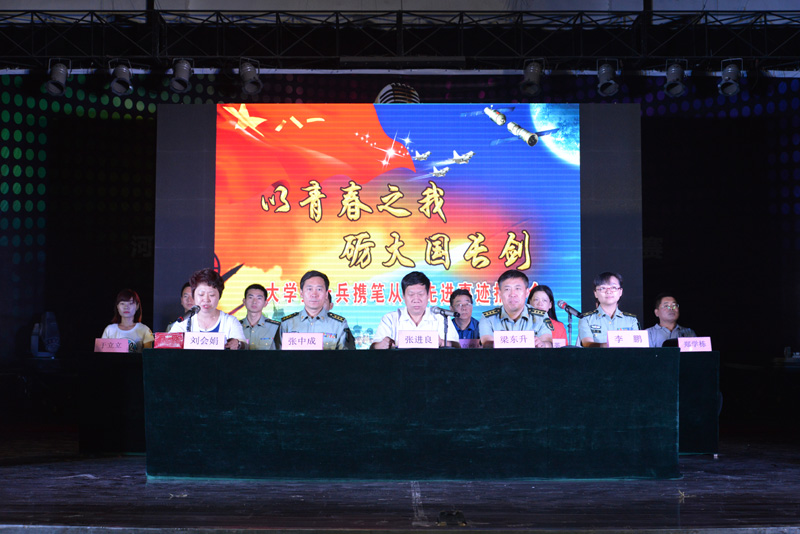5月28日,省征兵办组织的“以青春之我·砺大国长剑”老员工士兵携笔从戎先进事迹报告团来公司宣讲,石家庄市警备区政治部副主任张中成、桥西区人民武装部部长梁东升、公司党委书记张进良莅临报告会,各系书记、老师及600余名员工聆听。报告会由公司党委副书记刘会娟主持。