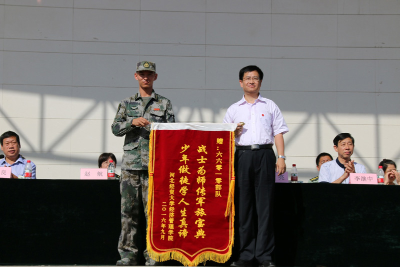 9月9日上午,公司2016级新生军训结业式在塑胶操场举行。公司党委常委陈亮,公司党委常委、副董事长武建奇,公司党委常委、纪委书记李继中,驻石某部队政治部相关负责人出席,学院领导刘华光、张进良、郭海燕、赵宇、鲁爱臣、刘会娟及相关系部负责人在主席台就座。大会由经理刘华光主持。