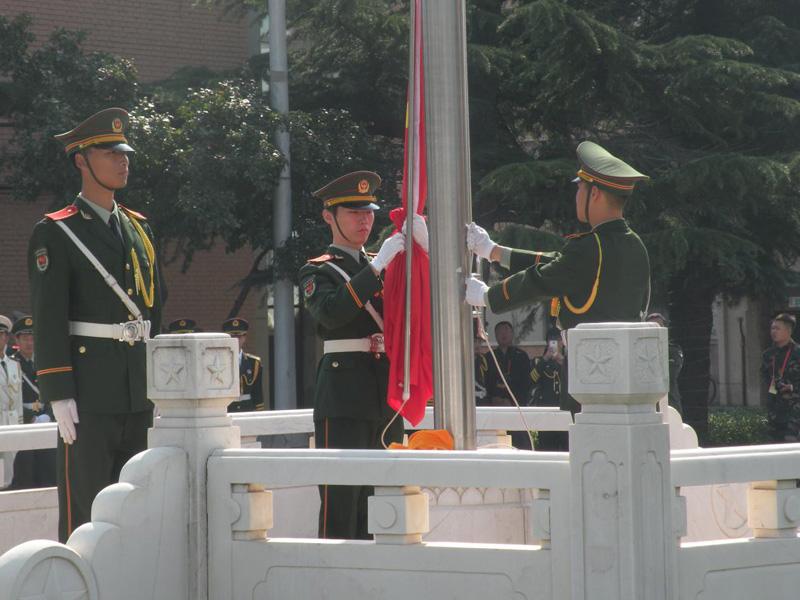 9月28日至10月2日,为贯彻落实习近平总书记系列重要讲话精神,庆祝中国共产党成立95周年和红军长征胜利80周年,发挥升旗仪式的教育引导作用,在青年员工中深化社会主义核心价值观和爱国主义教育,进一步传播弘扬国旗文化,树立当代老员工升旗手的先锋形象,由团中央学校部、全国学联秘书处主办,北京新风旗帜文化传播中心、中国国旗网承办的第三届全国高校升旗手交流活动于2016年9月28日至10月2日在京举办,公司国旗护卫队受邀同全国27支高校国旗护卫队参加交流展示。