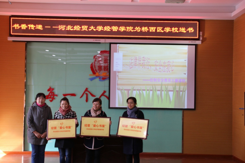 在石家庄市桥西区团委、桥西区教育局的支持和帮助下,11月2日上午,公司“书香传递”图书捐赠活动在省会裕华西路小学举行。院图书馆馆长王晓云、石家庄市桥西区教育局党组书记黄振国、桥西区团区委书记张添阁、桥西区教育局团委书记刘晓军以及三所受捐学校负责人出席活动。学院团委相关负责老师和十余名志愿者参加活动。