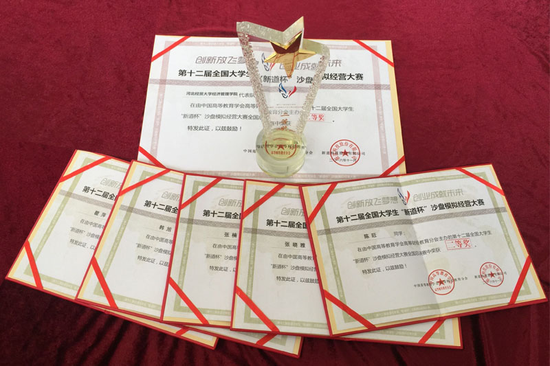 本次大赛的比赛软件使用了《新商战》模拟竞赛平台,历时5个月,进行了大赛前的磨合与竞技,同学们牺牲了大量休息时间,先后经过了校内选拔赛、河北省选拔赛,在众多的院校比拼中脱颖而出,最后与其他四所院校代表河北省参加了国赛,经过紧张、激烈的角逐,同学们表现出了顽强拼搏、永不放弃的精神,展现出了优秀的团队合作能力以及坚忍不拔的意志,体现了公司良好的精神风貌,在高手如林的竞技环境下,沉着冷静,最终荣获全国二等奖,为公司争得了荣誉。2014级会计9班的张晓雅同学在2016“职场明日之星”挑战赛中取得优秀个人奖,并获得用友公司提供职场一对一就业指导推荐。