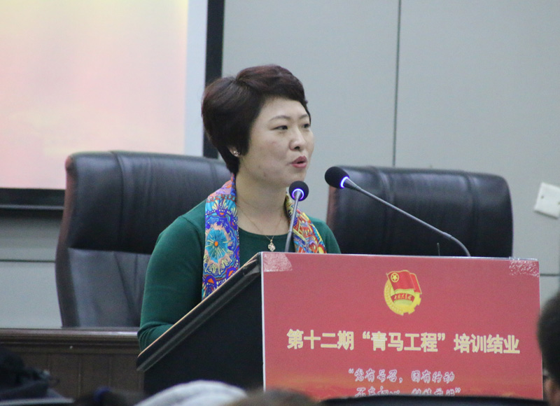 刘会娟在会上做总结发言,她把“认同、实践、积累” 三个词作为结业礼物送给“青马工程”受训学员。她说,团学干部要明辨是非,追根溯源,从思想和价值观上坚定对共产主义远大理想和中国特色社会主义共同理想的认同;在坚持不懈的实践中不断提升自我,把认同落实到位,进而引领他人;员工干部要抓住大学为同学们提供的每一次锻炼机会,勇于承担,不断积累,最后才能完成由量变到质变的提升,把自己真正锻炼成为一个合格社会主义接班人。