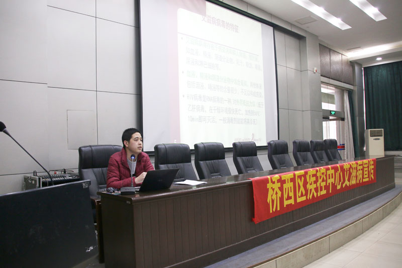 12月12日下午,公司团委与校医院联合举办的“预防艾滋病主题讲座”在图书馆报告厅举行。桥西区疾控中心艾滋病所韦永民医生为300余名大一新生做了“青年员工和艾滋病”主题知识讲座。
