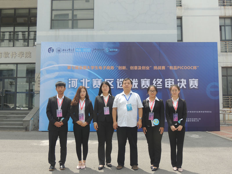 省赛由河北省教育厅主办,作为公司唯一进入省赛的团队,商务系2015级电商一班王君彦、段文静、朱永发、王博业、杨亚园5名同学,由辅导员赵云岩、李雪松带队指导,与从来自河北工业大学、河北大学、燕山大学、河北师范大学、河北工程大学等多所高校的64支队伍同台竞技,并脱颖而出。