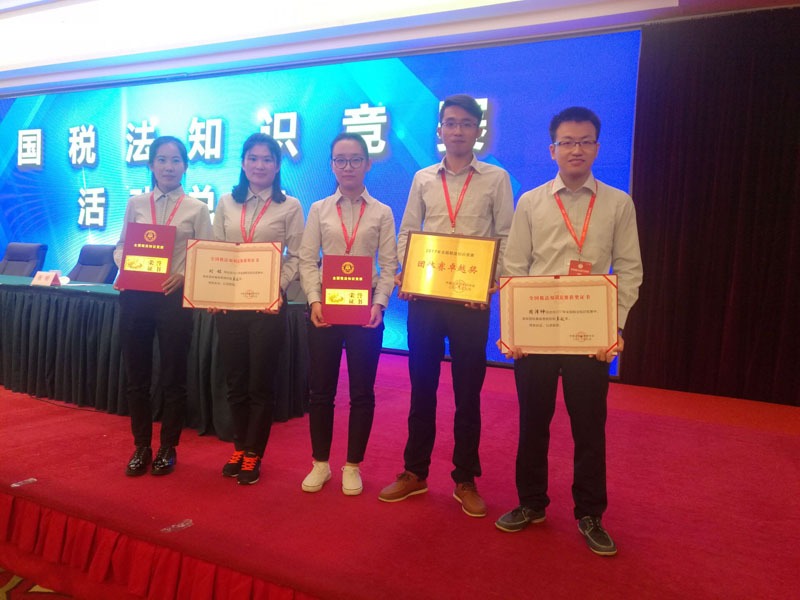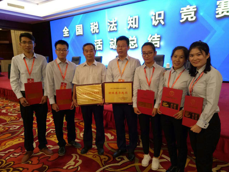 公司高度重视本次知识竞赛活动,组织了2115名员工参加了高等院校组初赛,其中有596人进入高等院校组复赛,并于2017年9月17日,在财税学院王京梁老师的指导下,由公司员工刘铭、靳亚丽、沈乐、许杨、周泽坤组成的团队,代表公司参加了全国税法知识竞赛团体决赛,与吉林财经大学、南京财经大学、景德镇陶瓷大学等同台竞技。在竞赛中,公司参赛同学在紧张的气氛中团结协作,最终荣获卓越奖。