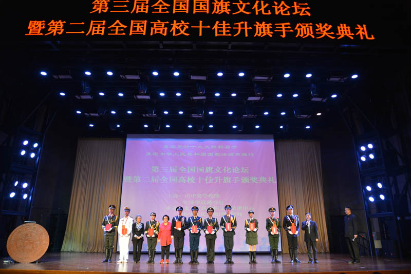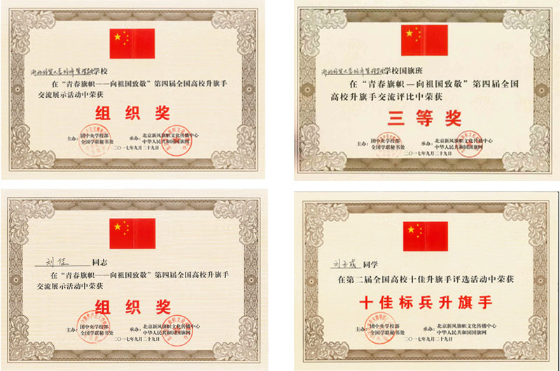 为庆祝中华人民共和国成立68周年,《中华人民共和国国旗法》颁布27周年,突出发挥升旗仪式的教育引导作用,由团中央学校部、全国学联秘书处主办的2017“青春旗帜——向祖国致敬”第四届全国高校升旗手交流展示活动于2017年9月28日至10月1日在北京隆重举办,公司员工工作部老师刘佳、邱学亮带领17名国旗护卫队队员参加。