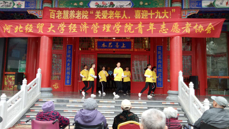 活动开始后,每两名志愿者为一组带着精心为老人准备的小盆栽前往老人的居处,与50位老人一起下象棋、聊天。随后,志愿者将老人们扶下楼观看由石家庄爱心公社和学院青年志愿者协会共同为老人带来的17个节目。志愿者们的精彩表演赢得了老人们的阵阵掌声。活动结束后,志愿者与老人们的合影留念。