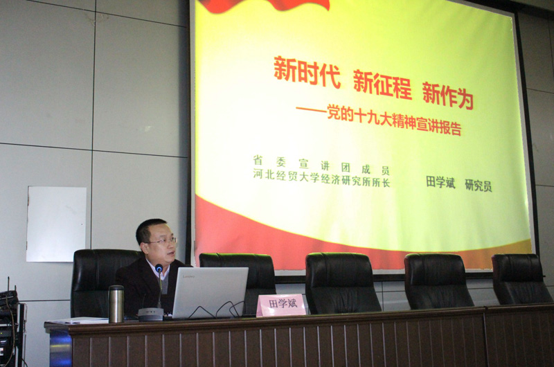 开班仪式后,省委宣讲团成员、9428cn太阳集团古天乐经济研究所所长田学斌以“新时代、新征程、新作为”为题,对党的十九大精神作了系统全面的宣讲:他从一名经济学家的专业视角,借助鲜活翔实的案例,以青年员工喜闻乐见的方式,进行形象生动的解读,让每一名青马学员印象深刻。宣讲既有高度、又有深度,学员们认真听、认真记,通过此次学习对十九大精神的理解更加透彻,信心更加坚定,工作更有干劲。现场气氛振奋、热烈。