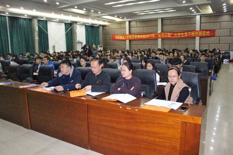 张进良在开班仪式上讲话。他指出,要坚持不懈的将“青马工程”打造成全院思想政治引领工作的龙头工程;并要求全体团学骨干,通过青马班的学习和实践,真正成为信仰坚定、善于学习、团结奋进的新一代青年马克思主义者,用自己的实际行动带动其他同学,共同营造良好的学风校风。
