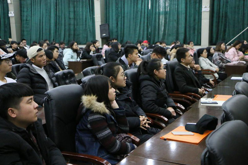 12月1日下午,马克思主义学院十九大精神研究生宣讲团在图书馆报告厅围绕生态文明建设和中国梦做了宣讲,学院8支“学习十九大精神”老员工宣讲团成员以及2017年青马班学员共计200人聆听学习。