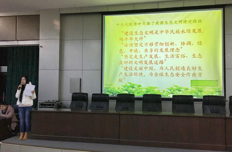 宣讲团成员霍维芳以“新时代生态文明建设”为题,宣讲了十九大报告中关于生态文明建设方面的内涵和当前我国生态文明建设存在的问题等内容,宣讲过程她不时与同学互动,和大家一起就“身边环境的改善”和“老员工能为生态文明做点什么”两方面展开了讨论,呼吁大家共同努力,从自身做起,从小事做起。宣讲团成员陈艺鑫则以“初心与中国梦”,对十九大报告的主题进行了解读,并分享了相关视频资料。