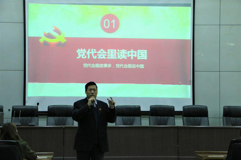 张进良以“十九大中描绘的蓝图,最能够充分享受的是谁?哪个群体最应该关注党代会?”提问的方式开场,吸引了青年员工的兴趣,随后从党代会中读中国、十九大中看中国、十九大里说青年三方面和全体学员进行了分享交流。他通过介绍党代会的历史、党代表的选拔等,指出中国共产党是历史和人民的选择,并从不忘初心、敢于承诺、自我改革三方面分析了中国共产党的品格作风;接着从青年的角度解读十九大,从未来享有更公平的物质分配机制、拥有更加公平的竞争环境和更宜居的现代生态环境等方面分析了十九大报告对青年人未来生活的影响。两个多小时的讲座,书记讲解通俗易懂、深入浅出,运用了大量详实数据和丰富案例。现场学员认真听讲,会场不时响起热烈的掌声。