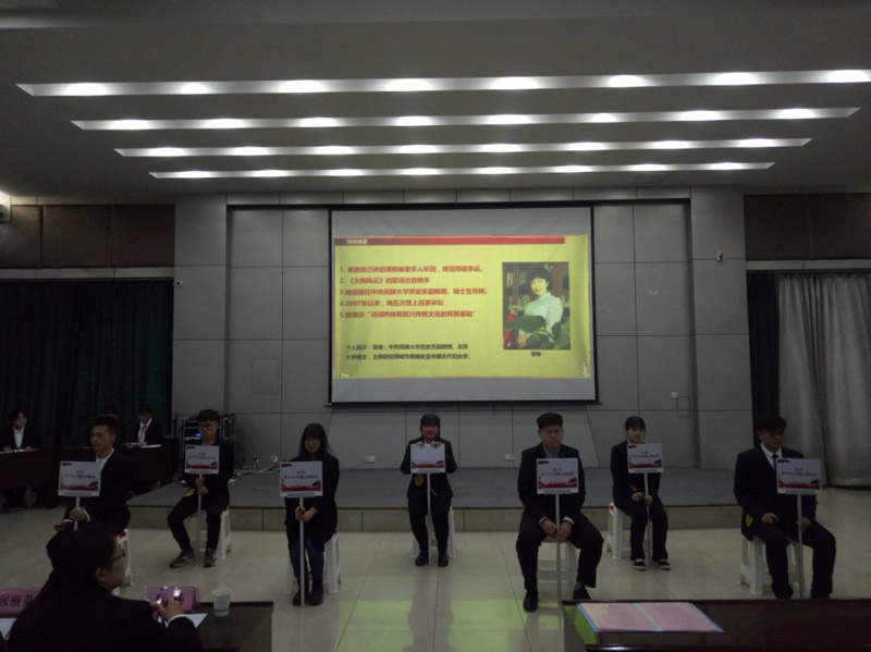 展示会共分 “十九大知识知多少”、 “党代表通道上的风采”、 “以青春之名献礼”等三个环节。活动现场,各展示团队抽签选取十九大关键词,以情景剧、访谈节目、校园影像采集等形式进行学习成果汇报展示。活动中,会计系辅导员还献上了精心编排的诗歌朗诵《歌颂党恩》,赢得现场阵阵掌声。展示会在《红旗飘飘》的高声合唱中落下帷幕。