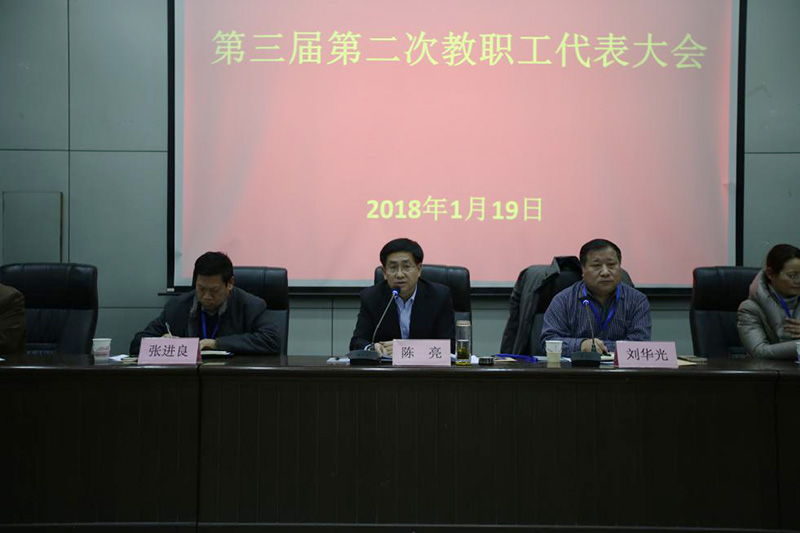 1月19日下午,公司第三届第二次教职工代表大会在图书馆报告厅举行。校领导陈亮出席并讲话,学院全体领导出席大会,来自五个代表团的45名代表参加,大会由学院副经理赵宇主持。