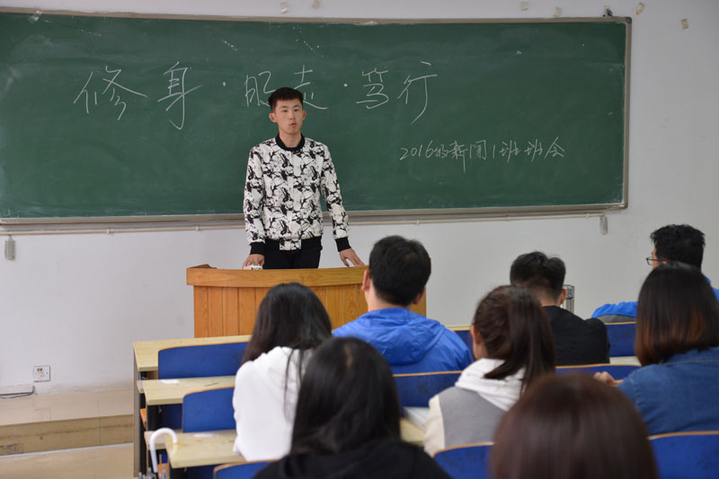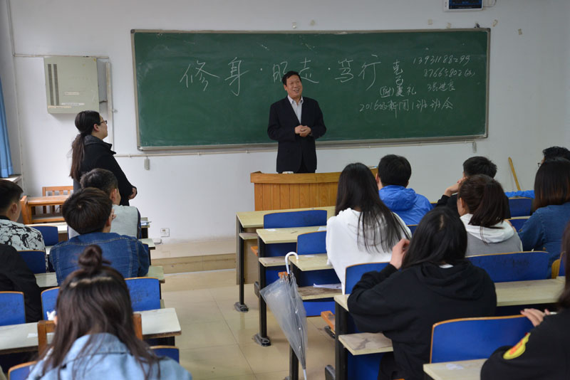 2018年4月13日, 2016级新闻一班在二教102教室举行了“修身·明志·笃行”的主题班会,班级的联系领导公司党委书记张进良出席并讲话。班会由辅导员乔蕾老师主持,2016级新闻1班全体同学参加。