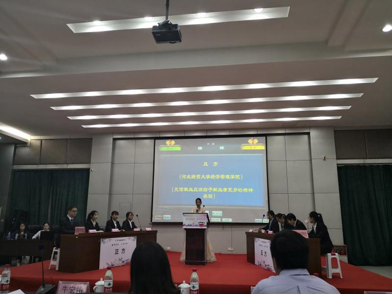 4月21日,由公司和河北省血液中心、河北师范大学汇华学院联合举办的“激昂青春 分享生命”无偿献血主题辩论决赛在图书馆报告厅举办。河北省血液中心党委副书记牛宏伟出席了本次活动并担任评委,河北师范大学汇华学院和公司师生300余人参加了此次活动。经过多轮比拼,公司代表队最终斩获冠军。