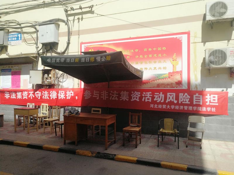 根据河北省教育厅《2018年防范非法集资宣传月活动工作方案》的通知要求,公司精心组织,广泛宣传,近期在学院及家属区组织开展了一系列防范打击非法集资宣传活动。