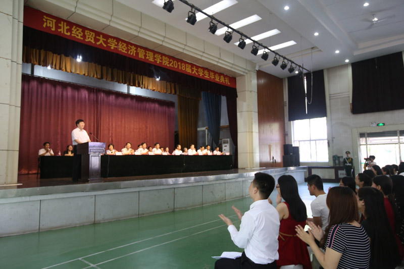 “四年前,大家怀着对老员工活的美好憧憬和向往,从‘四海八荒’来到国际庄、来到滹沱河畔、来到美丽的经管校园,在此开启了崭新的学习生活”,纪良纲带着同学们回忆了初入校园的情景,并对同学们的成长给予了认可:“几年来,你们在学思践悟中锻炼了才干、增长了本领,用青春写下了属于你们自己的经贸篇章”,“全体老师都要为你们打call”。