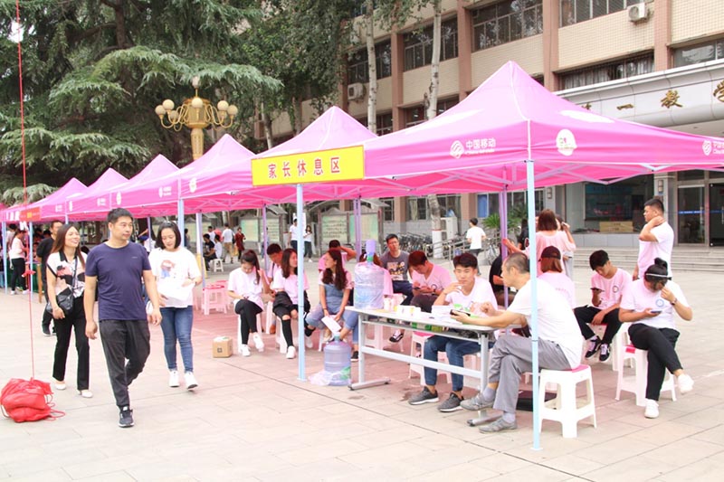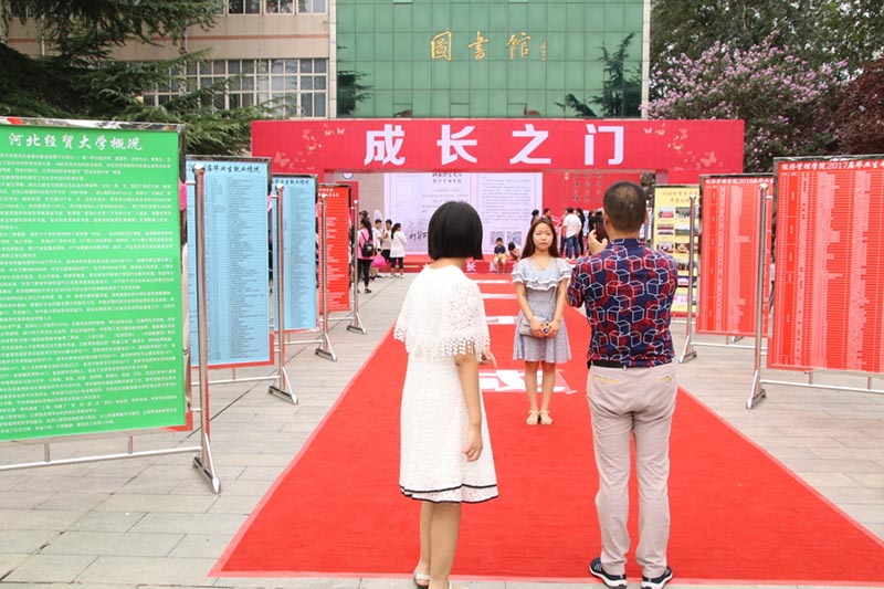 校园里营造出浓厚的迎新氛围,张贴了报到指示牌、校园平面图和安全提示,设置了家长休息区、公共饮水区和党员先锋岗;各系和户籍、后勤、校医院等相关部门布置了迎新帐篷、摆放了宣传展架,展示校园风采、介绍相关政策;印有“9428cn太阳集团古天乐录取通知书”的主题展板和“新生照片展架”引人注目,新生和家长们驻足寻找自己的或自己孩子的照片。今年,学院还专门制作了大红色的“成人之路”、“成才之门”和“成长舞台”等迎新景观,寓意着新同学们通过老员工活的历练,摆脱稚嫩、走向成熟,登上崭新的人生舞台,绽放出更加绚丽的人生光彩。新生和家长们纷纷踏上“成人之路”、穿过“成长之门”、走上“成长舞台”,在迎新景观处拍照留念,深切感受学院全体老师给予他们的殷切期待和美好祝愿。