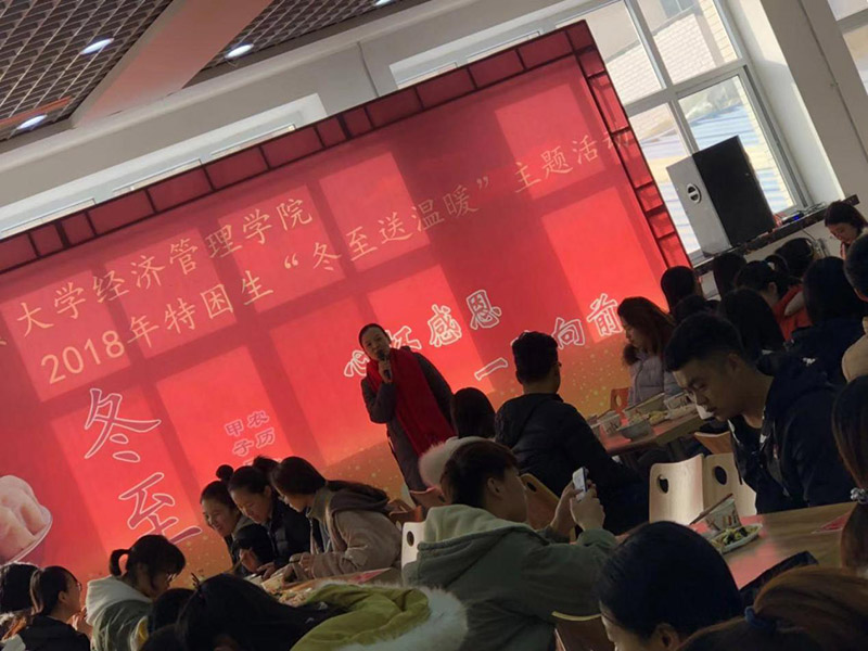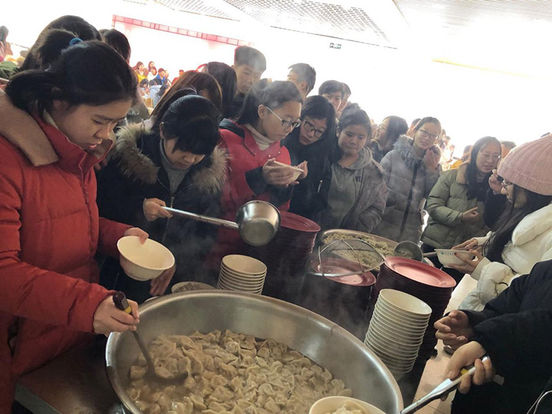 12月22日,公司员工工作部举办“冬至送温暖”主题活动,邀请学院400多名家庭经济困难员工在学院第一餐厅一起吃饺子,过冬至。活动由员工工作部邱学亮老师主持。