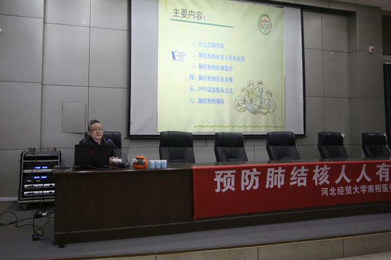 王主任通过数据统计、真实案例、图片资料等多种形式,详细讲解了什么是结核病,结核病的易感人群、发病原因、传播途径、临床症状及预防方法。在场同学系统地掌握了结核病的相关知识,认识到了结核病对在校老员工身体健康状况的严重影响。讲座后,校医院要求到场员工做好带头作用,以班级为单位,向同学们宣传防治结核病的方法。