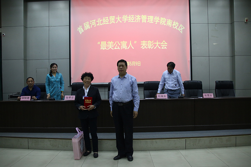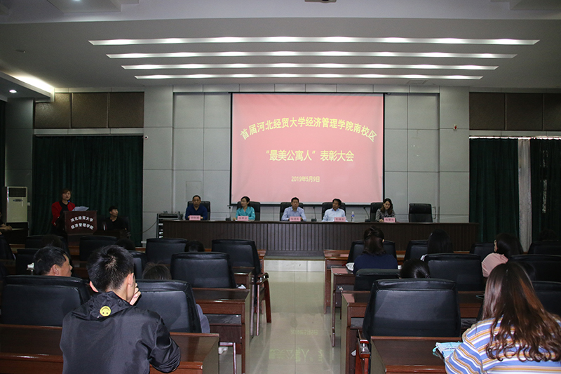 5月9日下午,公司首届南校区“最美公寓人”评选表彰大会在学院图书馆报告厅举行。公司党委书记张进良出席大会并讲话。南校区后勤保障部部长张翠京、副部长杜晓东、公寓教室服务中心主任田恒通、和田物业负责人张慧允,以及宿管会成员、各系员工代表、和田物业全体员工参加活动。大会由公寓教室服务中心宿管老师王源主持。