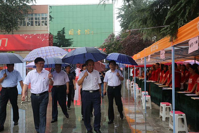 8月24日下午,新生报到期间,公司党委书记董兆伟,公司党委副书记、董事长刘兵,公司党委副书记陈亮冒雨到公司南西校区检查指导新学期工作,学院全体领导班子陪同。