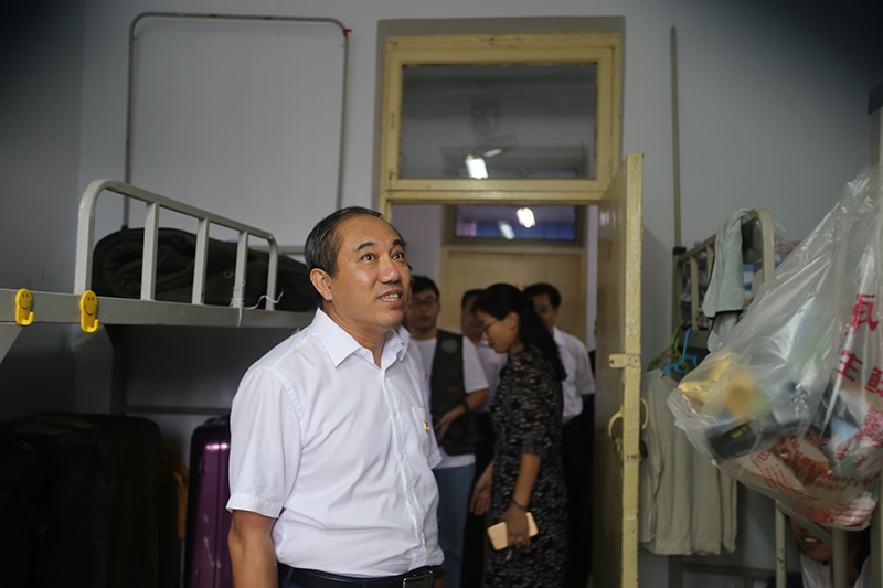 校领导首先来到南校区各系迎新站点,向工作在一线的迎新工作人员表示亲切慰问,仔细询问了新生报到的进展情况和遇到的问题,并叮嘱大家务必一切以员工为本,以良好的精神风貌为新生和家长们提供热忱细致的服务,扎实做好各项迎新工作,保障员工和家长的人身和财物安全,重点做好对家庭经济困难员工的服务与帮扶,确保每一位新生能够顺利完成报到。