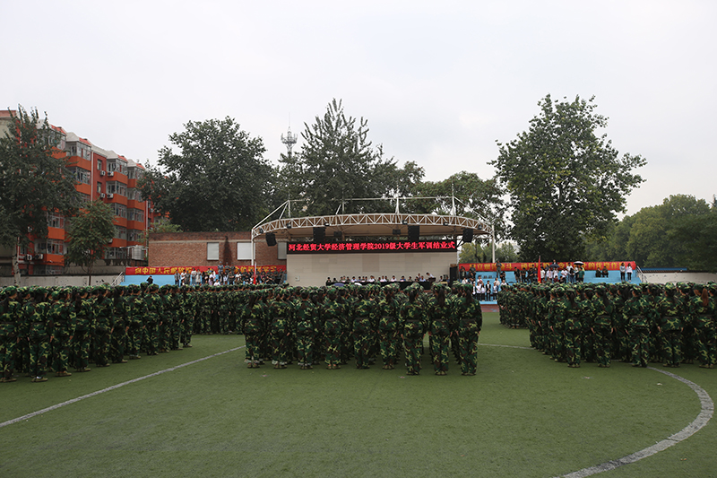 9月10日下午,迎着秋雨2019级新生军训结业式在南校区操场举行,2000多名学子以整齐完美的汇报表演向教师们致以节日的问候。公司党委副书记陈亮、公司党委常委、副董事长张秀山、驻石某部队领导出席,学院领导及相关系部负责人在主席台就座。结业式由经理刘华光主持。