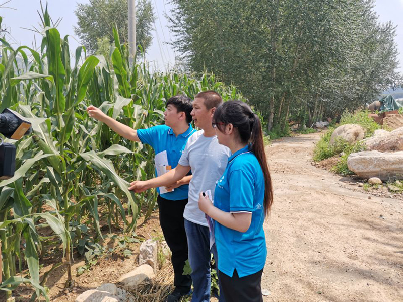 刘翰阳(左一)深入田间地头进行实践调研