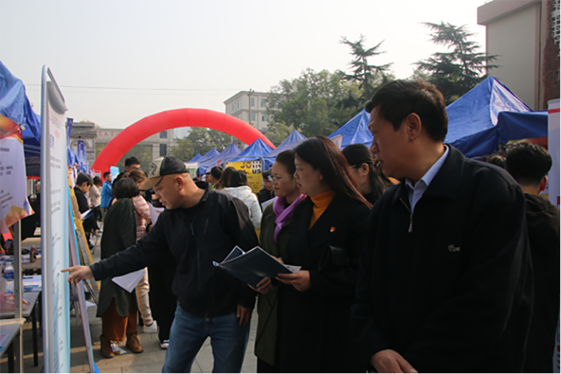 11月8日,石家庄市2019创业就业服务金秋高校行暨公司2020届毕业生校园双选会在图书馆广场举行。学院领导和各系书记亲临现场,指导工作并调研就业情况。