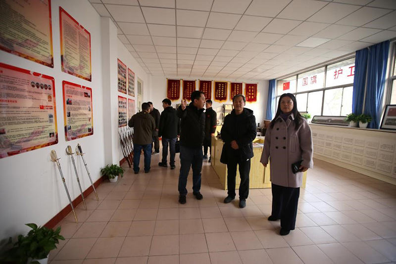 听完汇报后,检查组来到公司国防教育展室检查了军训设施,并饶有兴趣地参观了学院国旗教育展厅,认为这是学院在巩固训育人成果方面又一项突出成绩。随后检查组查阅了学院近两年军事训练评估档案材料,查验了军事教务课程安排,旁听了白建锋老师的军事理论课,并与员工进行座谈,在军事教研室,检查组考察了军事教研建设情况,还详细查验了教研所需的书刊资料。