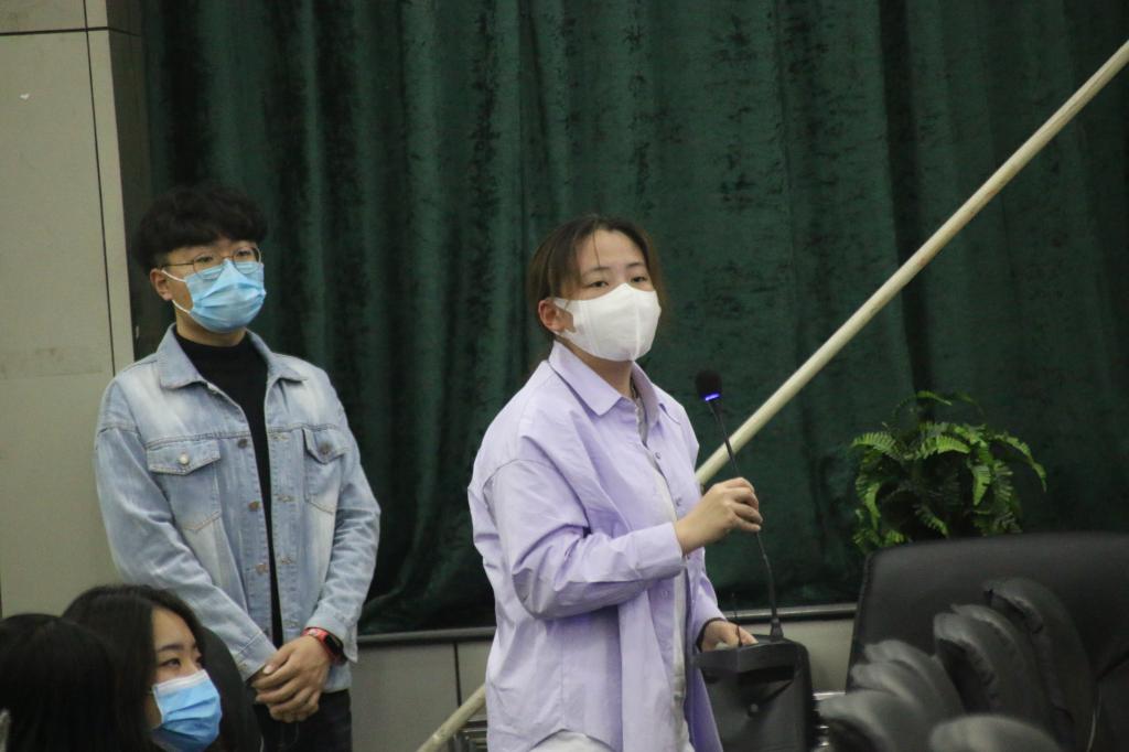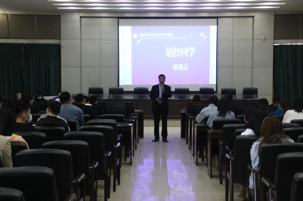 张进良做总结发言,他首先代表学院,对经管学子们在特殊时期为抗击疫情做出的贡献,以及对学院工作的支持和理解表示衷心的感谢。他指出,座谈会的召开就是希望将疫情期间员工宿舍的征用工作做到善始善终,会上同学们反应的问题也一定会在最短时间内彻底解决。同时,他对同学们提出三点要求:一是仍要做到思想不松懈,时刻绷紧疫情防控这根弦,配合学院做好各项工作;二是厚植爱国情怀,传承抗疫精神,培养勇挑重担敢担当的责任意识;三是,快速进入学习状态,继续保持宿舍卫生,不断提升宿舍文明。他希望与会员工代表迅速向其他同学们传达会议精神,坚持良好的学习生活习惯,严格遵守疫情防控的各项要求,以饱满的精神面貌开启新学期学习生活。