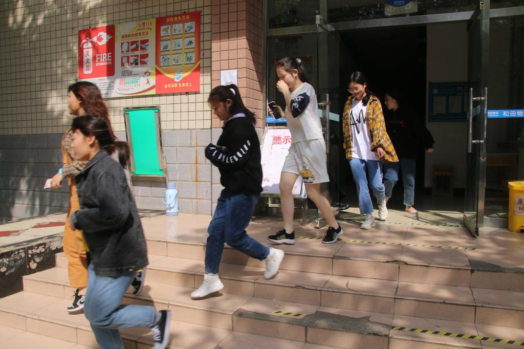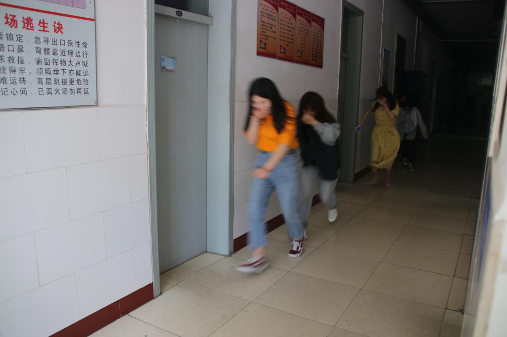 演练开始前,路士国对演练内容、疏散要求、逃生路线等事项进行了详细说明。14点50分,公寓楼哨声鸣响,逃生演练正式开始,两个逃生出口被迅速打开。根据演练方案,应急疏散组成员指导员工捂住口鼻,伏低身体,快速撤出宿舍,按照预设的逃生路线,有序地撤离到图书馆广场,并清点人数上报到指挥小组。校医院医护人员随时待命。整个疏散演练井然有序,快速完成。