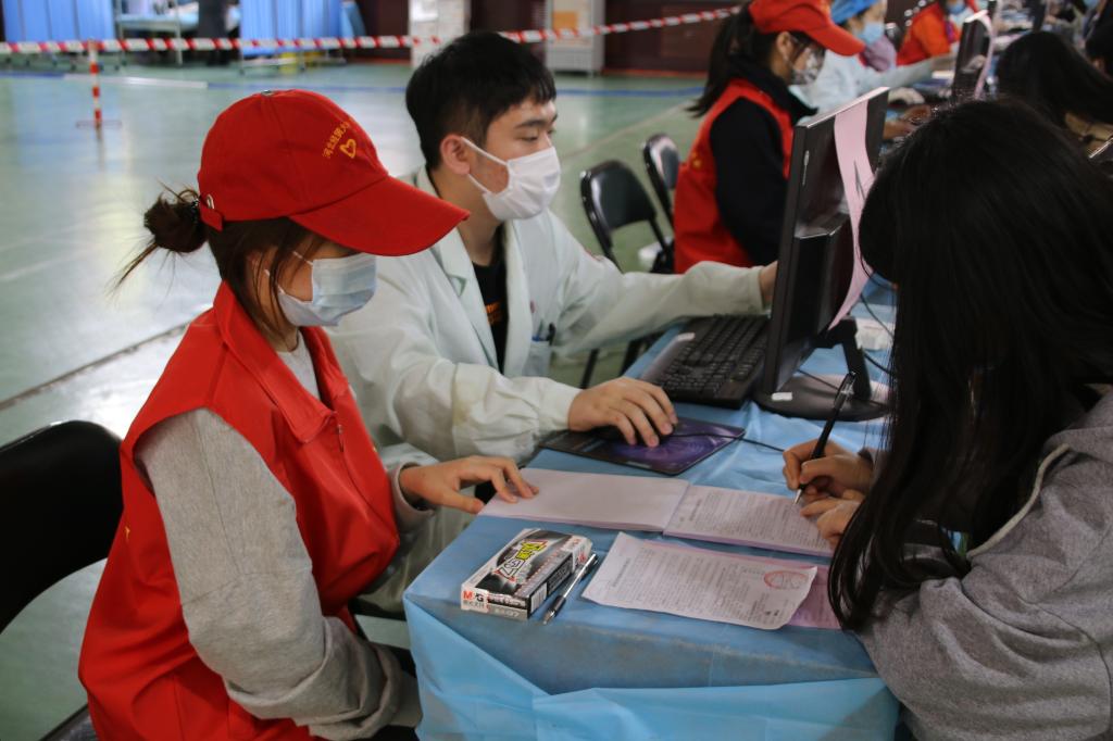 接种现场分为等候区、登记区、接种区、留观区和紧急处置区。前来接种的师生按流程接受现场医生对接种条件的审核、健康情况与既往病史问询,核对身份信息、了解注意事项。接种完成后,到指定区域留观半个小时,未出现不适症状方可离开。接种工作由石家庄市红旗、旭成、丰河苑三家社区卫生服务站共同完成。