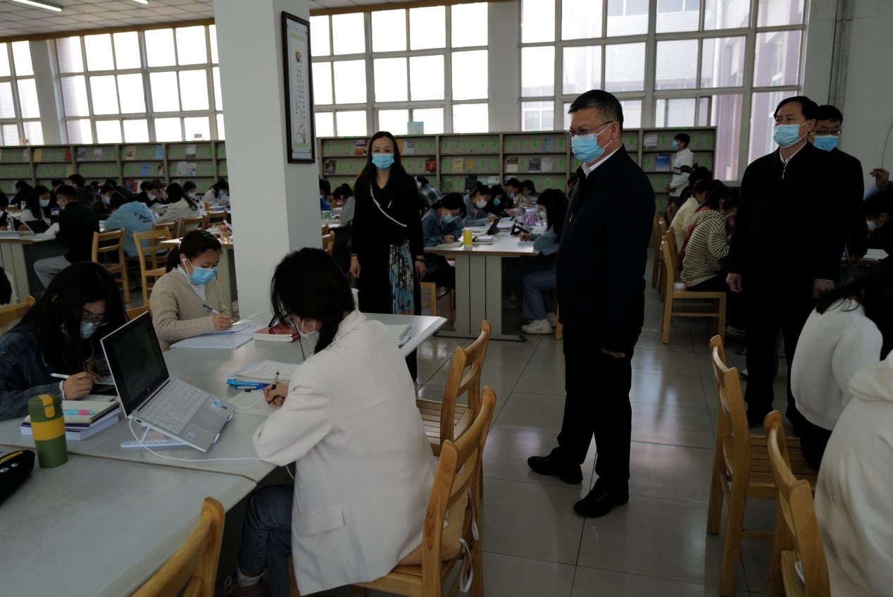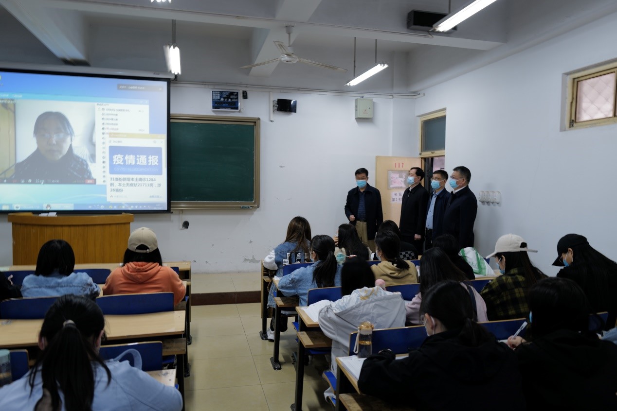 4月7日上午,公司党委副书记、董事长刘兵、校领导刘建平、高晓峰、张秀山到公司检查指导线上教学、疫情防控、宿舍安全等工作,学校办公室、人事处负责人参加,学院全体领导班子、各系书记及相关工作人员陪同。