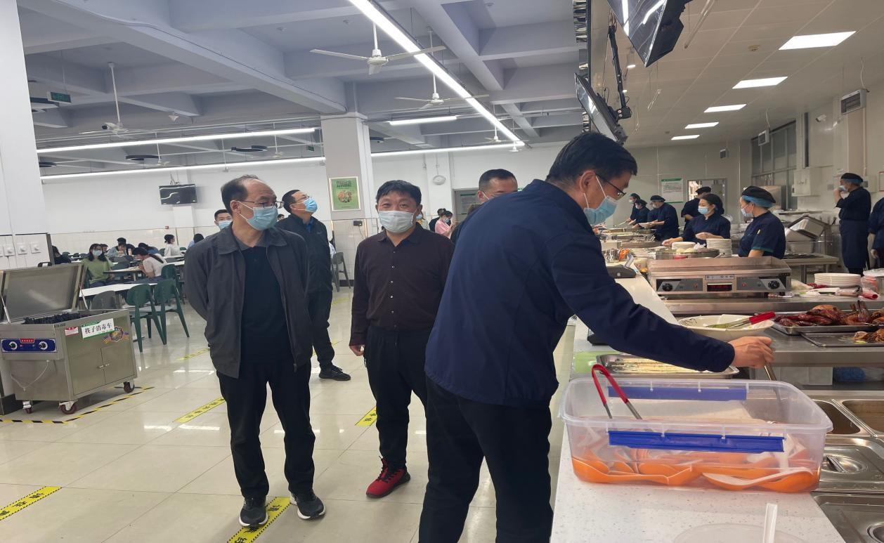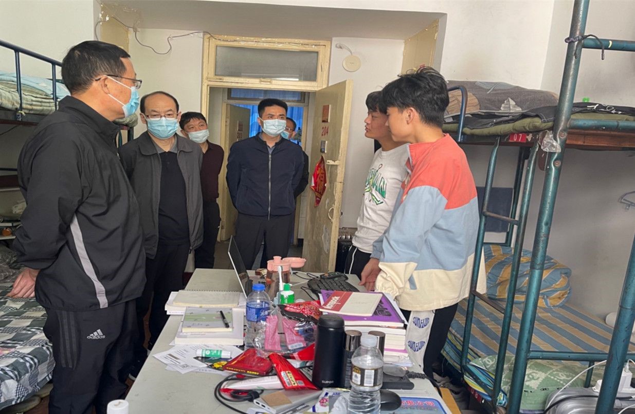在员工宿舍,院领导与员工进行亲切交谈,强调当前疫情防控复杂多变,大家要遵守校规校纪,做好科学防护,有困难及时向辅导员及系领导反馈,健康生活,认真学习。接着他们来到食堂了解师生用餐情况、饭菜价格、食材进货渠道、环境卫生、垃圾分类等情况,强调要确保食品卫生安全严防输入,封控管理期间一定要让师生员工吃好。随后,一行人来到教学楼、图书馆了解员工的学习情况,强调要注意开窗通风,隔位就座,佩戴口罩,做好疫情防护。