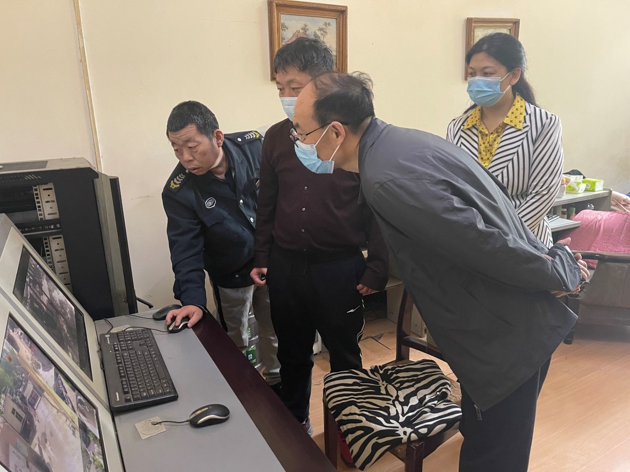 院领导首先查看了校园整体围墙的防护和监控室的运行,对存在的问题提出了指导性的意见,马斌书记指出,疫情防控工作是当前头等大事,要加强认识,提高站位,统筹做好疫情防控、安全管理、公司产品等各项工作。