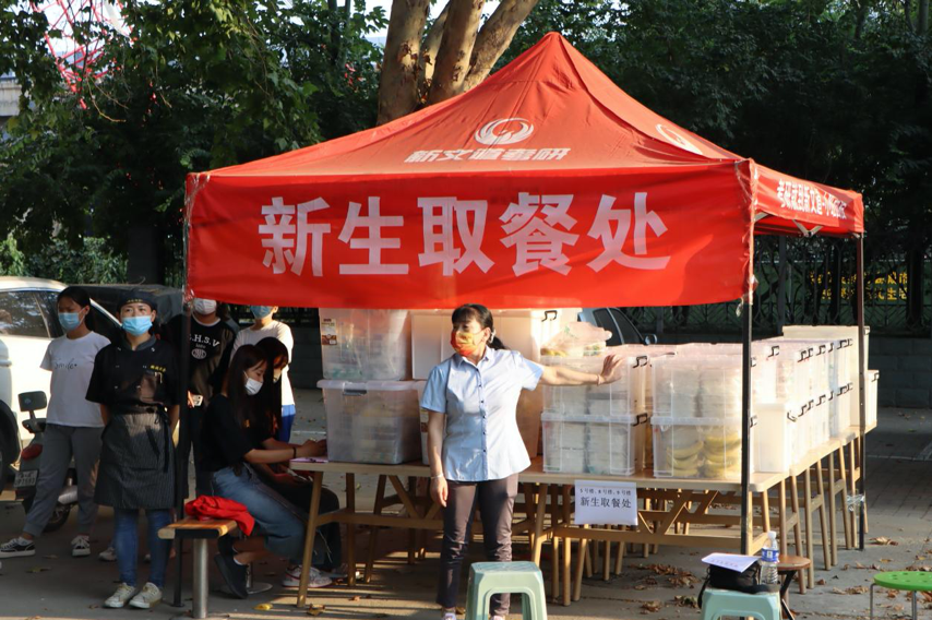 新生入校后将进行三天的静默管理,学院后勤部门专门配备标准化快餐,荤素搭配,营养均衡,志愿者们在取餐点统一打包后,配送上楼。新生们表示:开学第一天,我们就感受到学院的服务,体贴周到,暖心又暖胃。