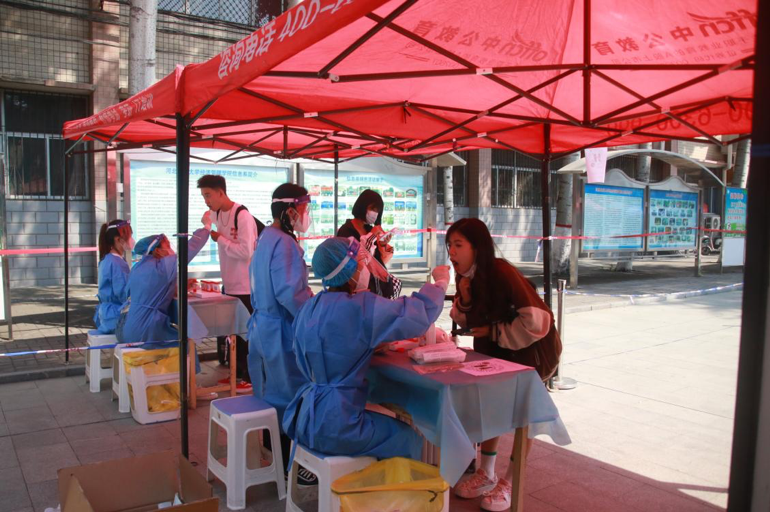 从开学到现在几乎每天都要进行全员核酸,为了更好更高效地完成这一任务,每次收工后,小组成员都要开会,总结出现的问题,检查不合规的操作,布置下一次任务。经过持续深入挖潜,现在完成一次8000多人的全员核酸采集的时间由原来的4个半小时,缩短到了2个半小时,最大限度地提升了检测效率。