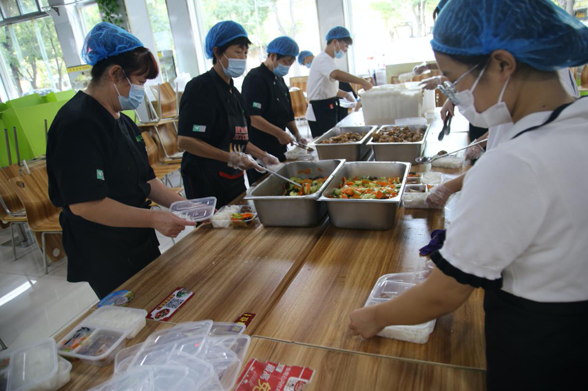 民以食为天,开学后学院校园实行封闭管理,尤其是新生报道那几天,2000多人的餐饮需要打包配送,餐饮服务中心的压力骤然增大,在学院和后勤保障部的统一指挥下,在各系部志愿者的积极配合下,全体员工不畏辛苦,克服人手不足等困难,竭尽全力做好全院师生的“一日三餐”。他们虽不身处防疫一线,却是全院师生们最坚强的后盾!