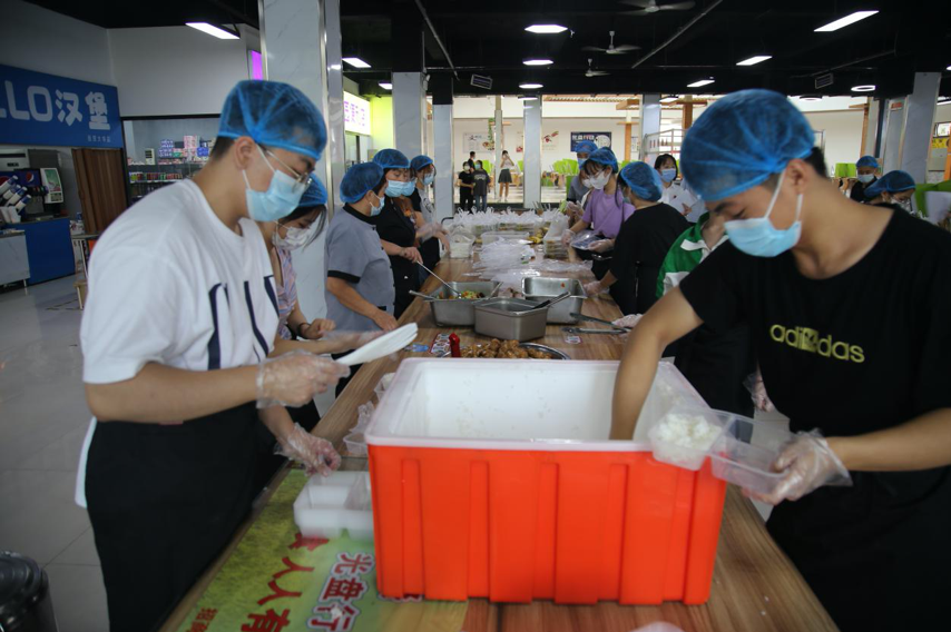 餐饮服务中心十分重视新生在宿舍封闭期间的饮食,韩新果解释:“我们特地将美食苑设为新生用餐窗口,每个窗口配有20名志愿者负责打包,要求出餐后两小时内配送完毕,力求做到恒温送达,必须保证饭菜到员工手里是新鲜的、热乎的。”