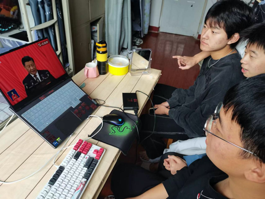 在五楼会议室,学院领导马斌、刘风长、张进良、江秀军及在公司党员干部集体观看了开幕式直播;各系组织员工在遵守疫情防控要求的前提下通过央视新闻、微博、B站等直播平台以多种形式观看了盛会。居家办公的教职工也通过电视、电脑收听收看实况。大家认真聆听,对习近平总书记的报告基本内容、主要观点、总体精神进行初步的学习,为下一步深入学习贯彻党的二十大精神打下良好基础。