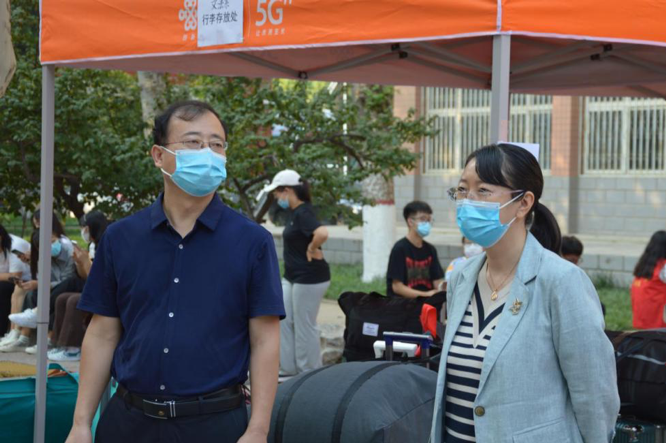 王鸿喜和张丽媛在迎新现场随时处理员工问题