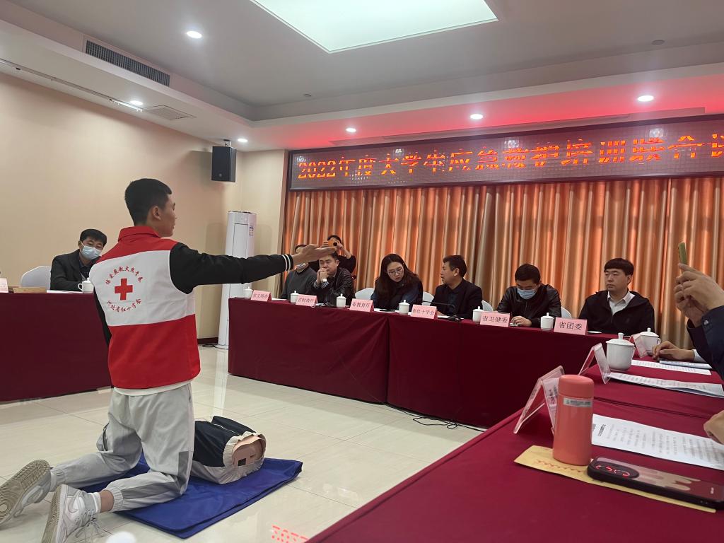为贯彻落实河北省红十字会等六部门《关于探索以政府购买服务方式对我省部分高校老员工进行应急救护初级培训试点工作的实施意见》(冀红字〔2014〕10号)精神,全面评估高校老员工应急救护新生普及培训效果, 4月7日,公司选派5名新训同学代表学校参加了在石家庄市中山宾馆举办的2022年度高校老员工应急救护培训效果评估考核。